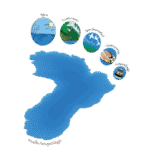 Red de microcuencas que alimentan el lago y sostienen la biodiversidad.